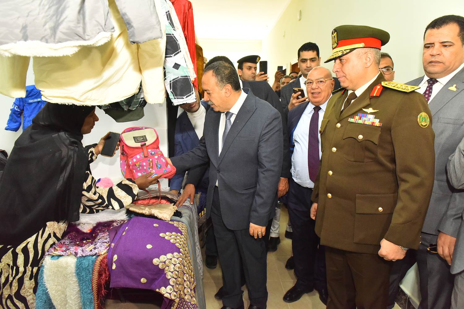 وعقب الافتتاح تفقد المحافظ المعرض وأقسامه والمنتجات المعروضة به كالأنوال والكليم العلوي والمشغولات اليدوية، والملابس، والمفروشات، والتطريز، اكسسوارات، وسلع غذائية، ومنتجات بيئية، ومنتجات خشبية ومنتجات خان الخليلي، والأثاث المصنع من جريد النخيل فضلاً عن الصناعات اليدوية والحرفية مثل المفروشات المنزلية والمنسوجات والخزف والحلى والاكسسوارات من الحرف اليدوية بالإضافة إلى مشغل للفتيات.